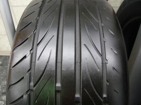 このまま放っておくとタイヤは写真の様に片側だけがツルツルに減ります。
