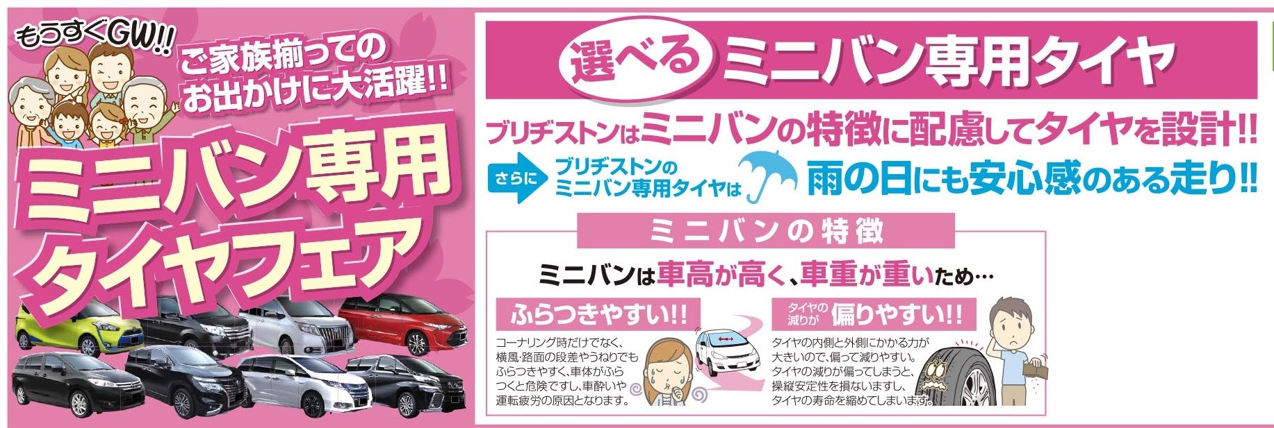 実は。。。ミニバン専用タイヤフェアも同時開催しているんです((((o゚▽゚)o)))♪