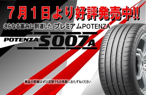 【ポテンザS001】の後継商品『POTENZA S007A(ポテンザ エス・ゼロ・ゼロ・セブン)』