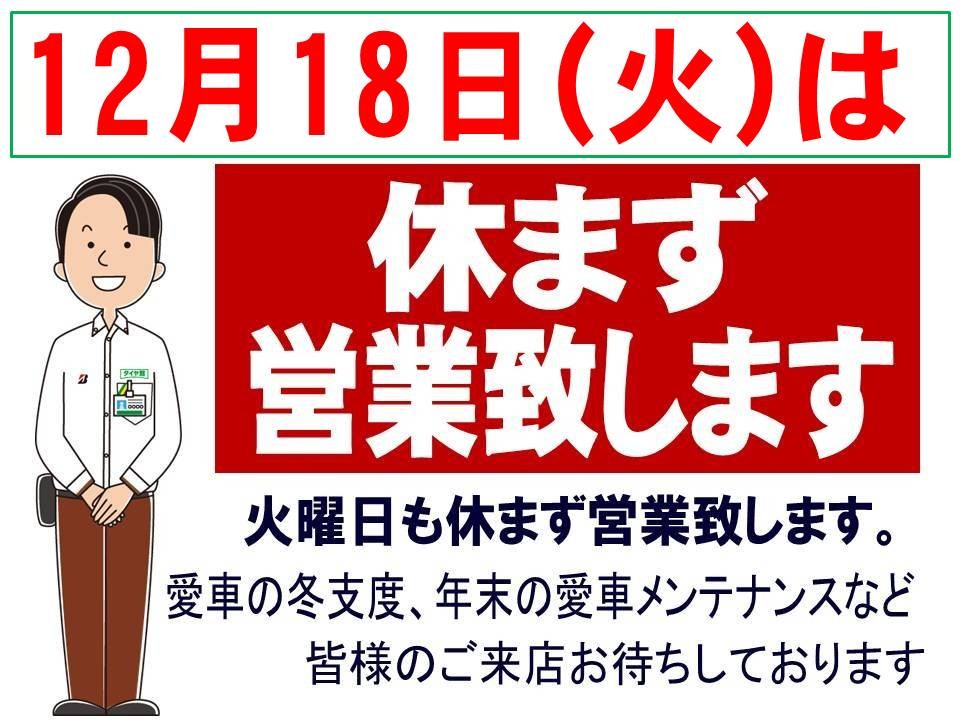 明日12/18は火曜日ですが、営業いたします(*^-^*)