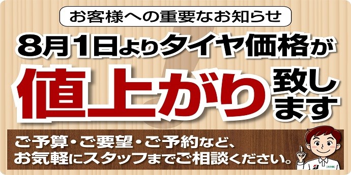 タイヤの値上がりがございます