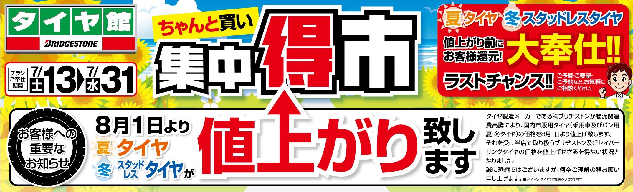 是非 集中得市期間中・値上がり前の7月中にご来店ください