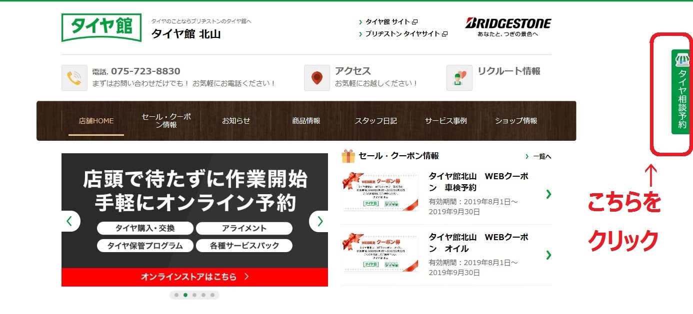 「タイヤ相談予約」の予約方法のご説明