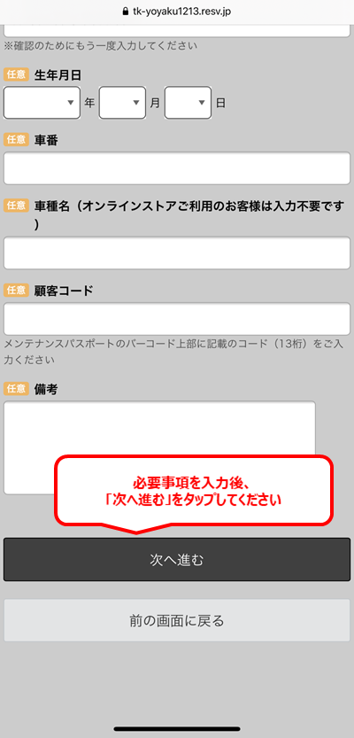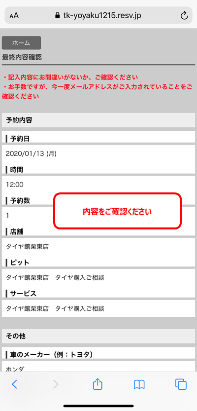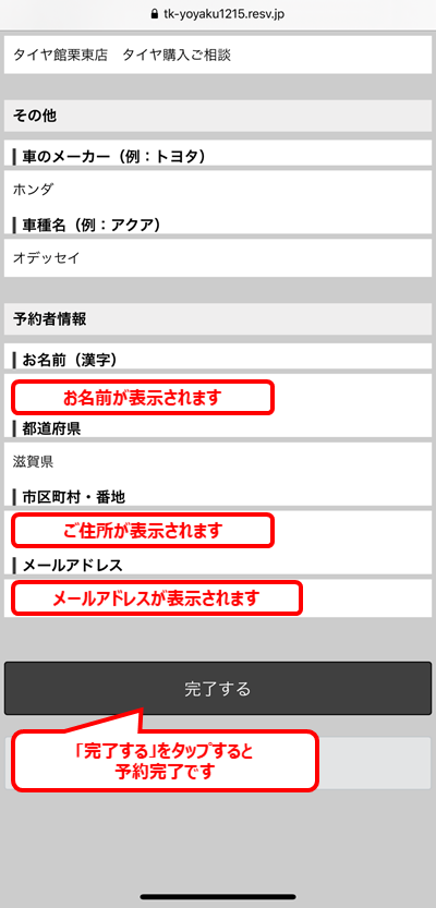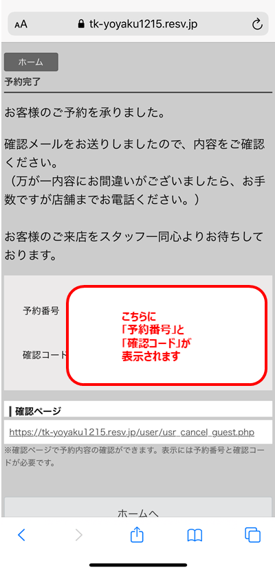 以上でご予約が完了します。