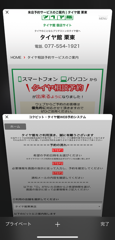 タイヤ館栗東のウェブサイトの下に表示される