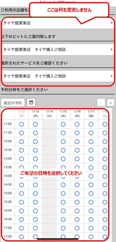初期表示のまま日時のみを選択してください。