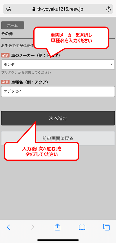 ★お車の情報をご入力ください