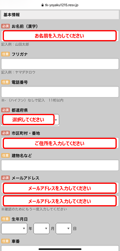★お名前・ご住所・メールアドレスを入力してください