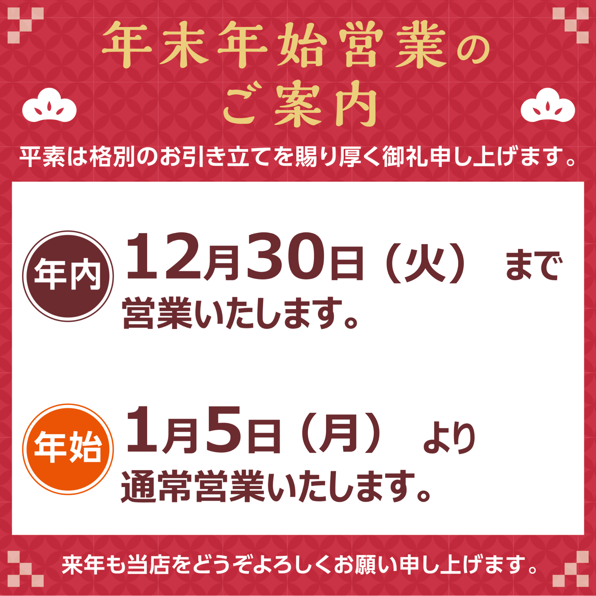 ☆★☆年末年始営業のご案内☆★☆ いつもタイヤ館栗東をご利用いただき ありがとうございます! 今年も残すところあとわずか…! タイヤ館栗東の年末年始の営業日について ご案内です(^O^)/ タイヤ館栗東では、 12月31日(水)~1月4日(日)の5日間を 年末年始の休業日とさせていただきます。 ご来店の際は...