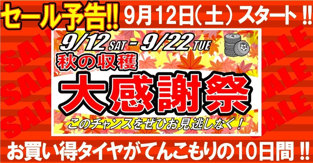 いよいよ始まる「秋のタイヤSALE」!!!