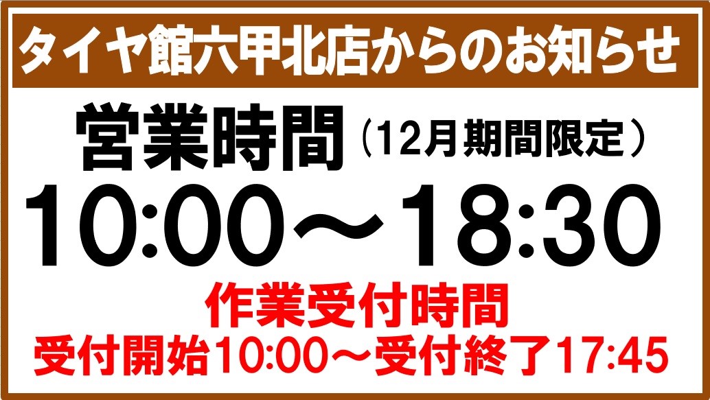 12月の営業時間を変更する事となりましたので、お知らせいたします。