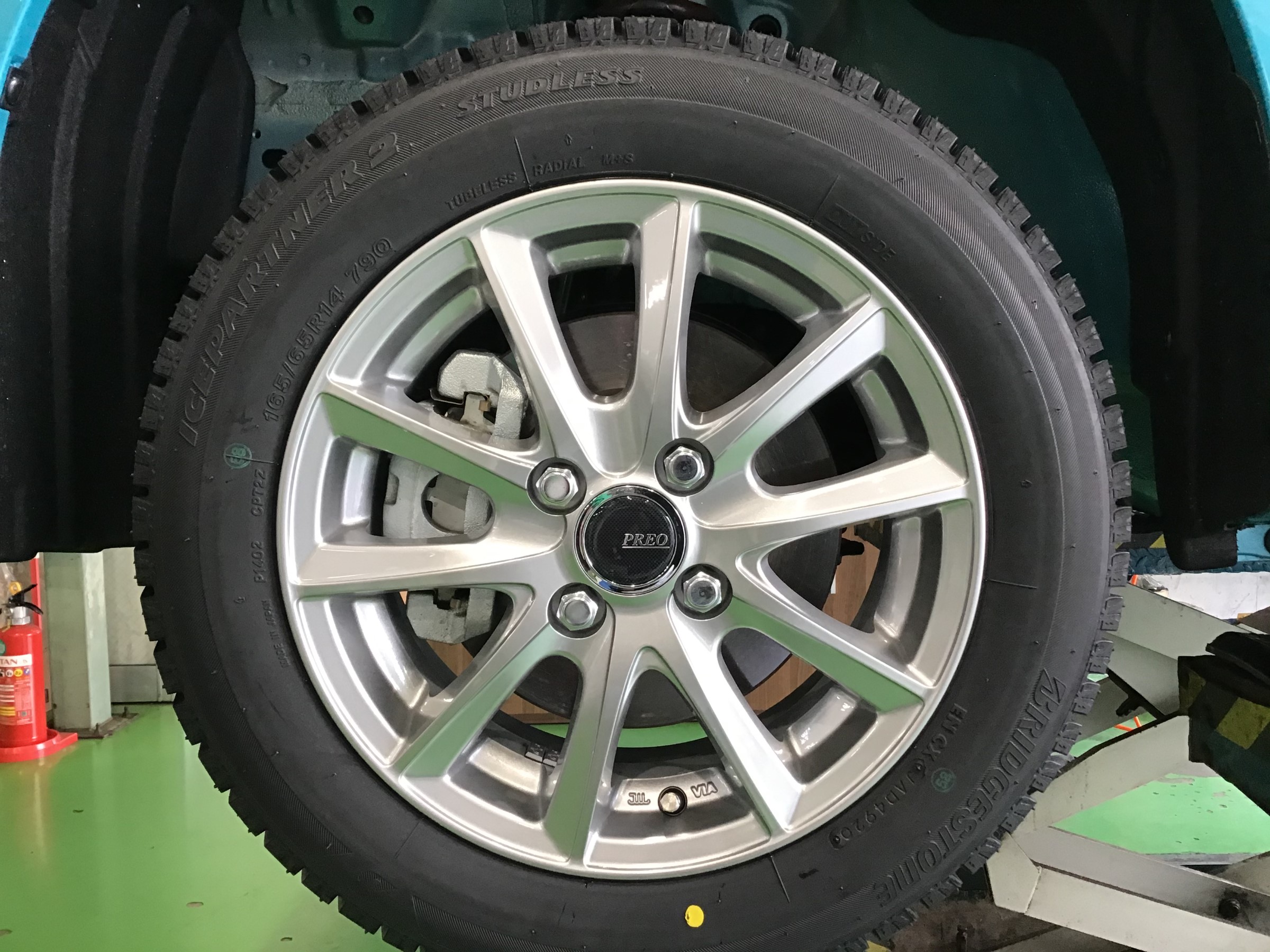 スタッドレスタイヤ&ホイールセット装着です。