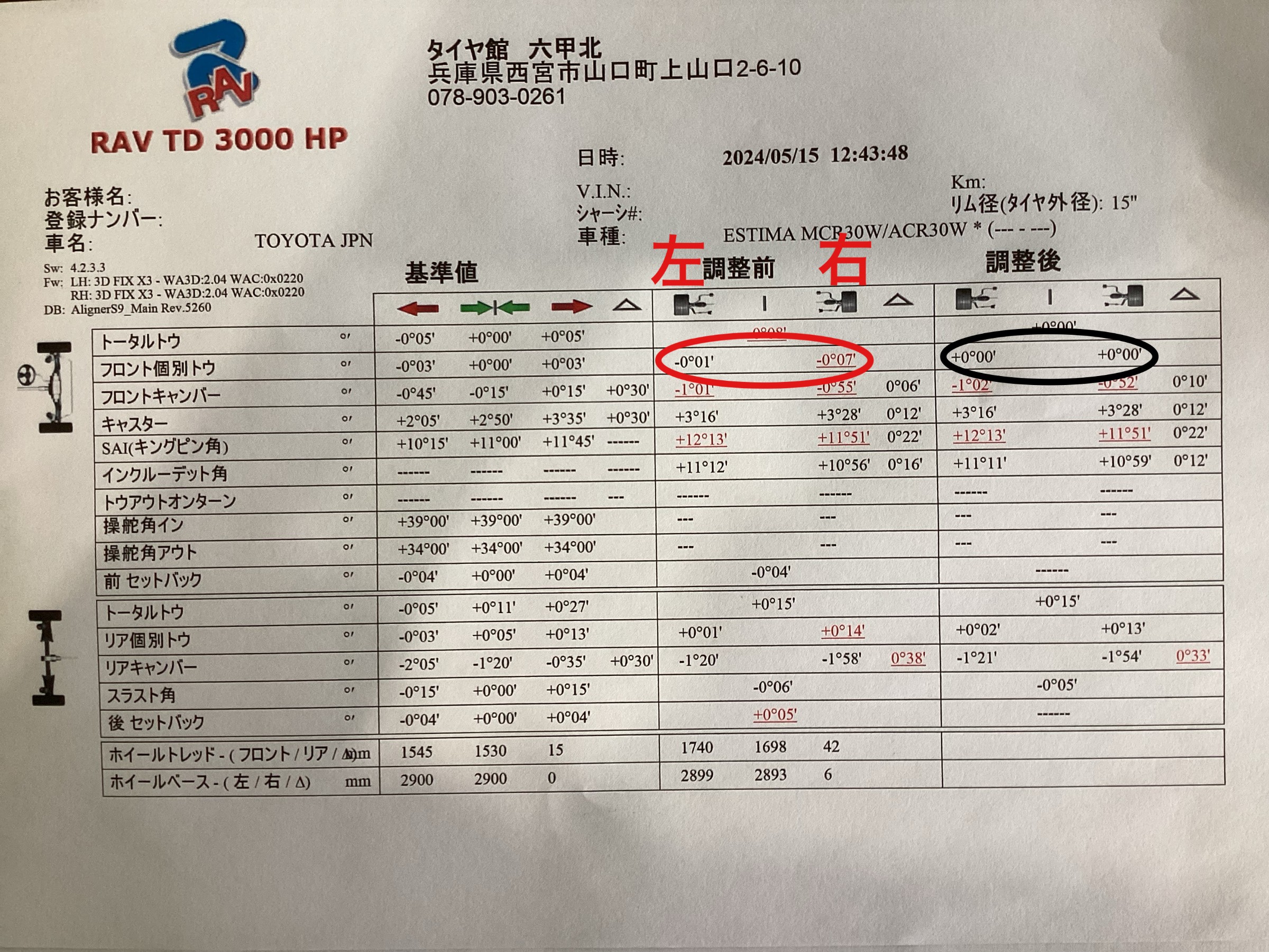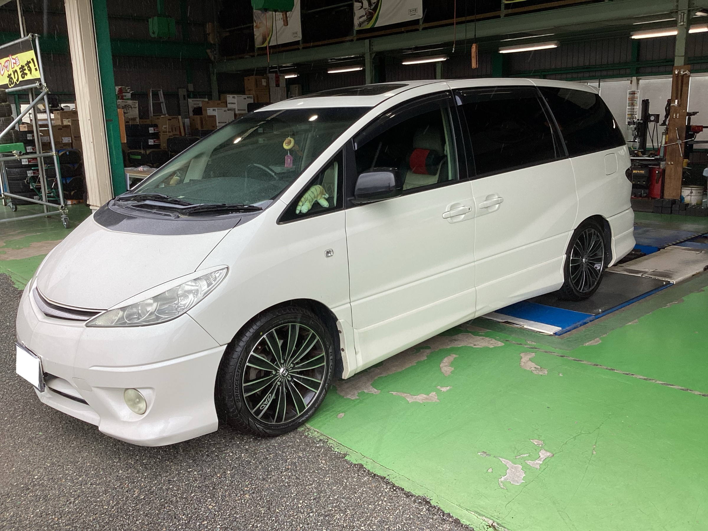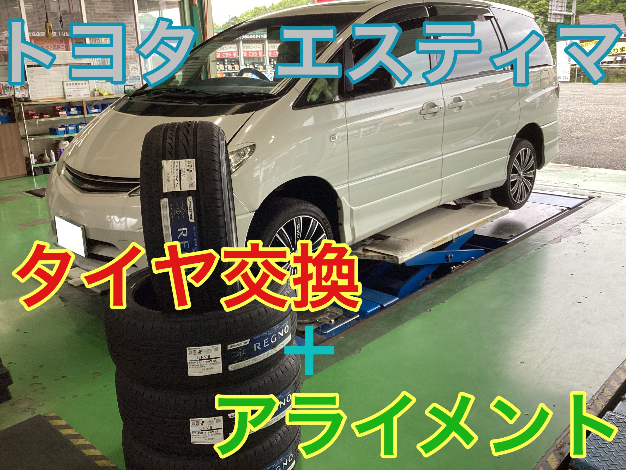 トヨタ エスティマのタイヤ交換とアライメントをさせていただきました!