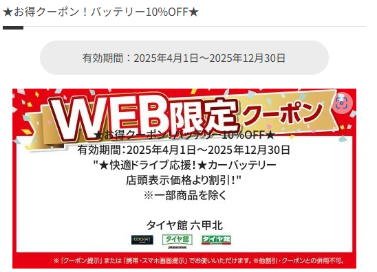 【バッテリー 10%オフクーポン】