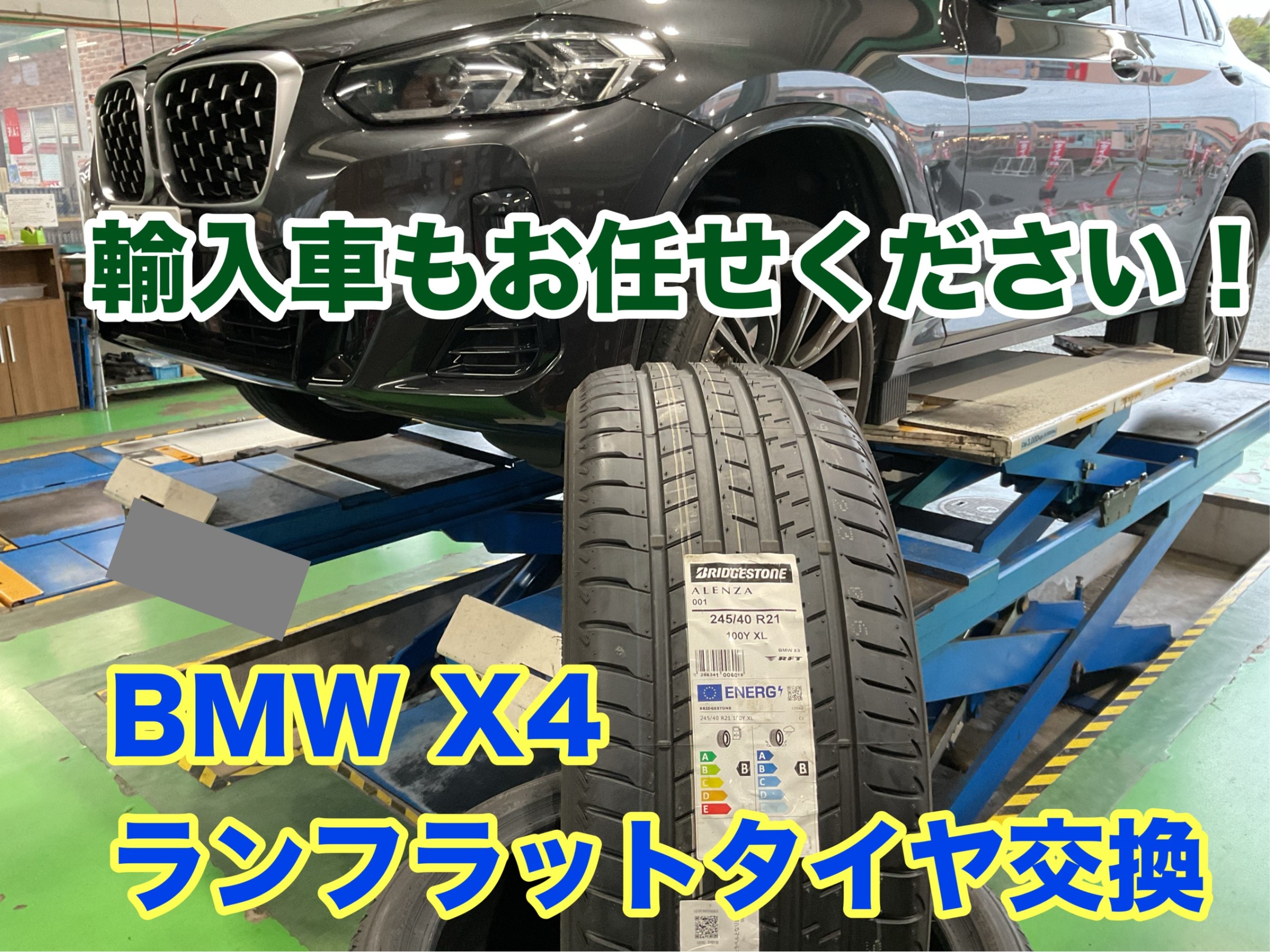 輸入車もお任せください! BMW X4 ランフラットタイヤ交換