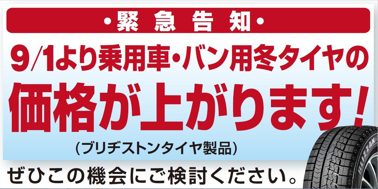 乗車車・バン用冬タイヤを値上げさせて頂きます。