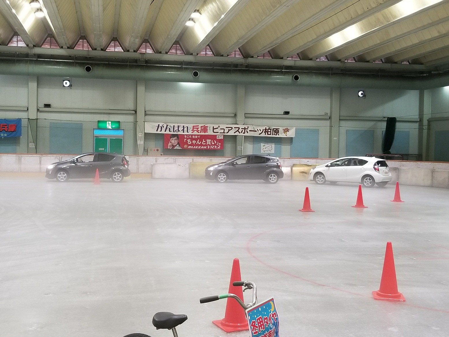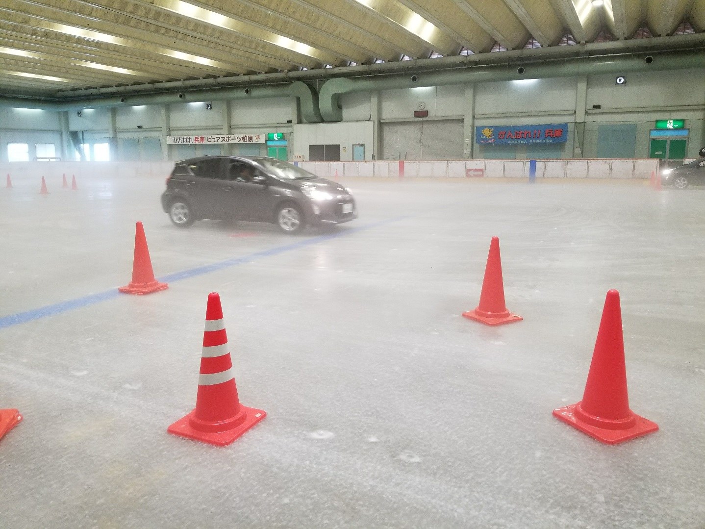 スケートリンクの上で車を発進、加速し、そこからフルブレーキ!!