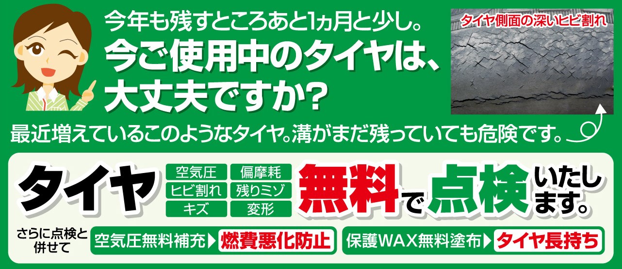 ありがとうございました!!!! ポスト 2017年11月26日 集中得市、沢山のご来店 ありがとうございました!!!! もうすぐ12月(゜o゜) 今年も残り僅かですね。 まだスタッドレスタイヤを装着していない、 またはゲットしていない。 そこのあなた!!!! まだ間に合いますよ\(◎o◎) 品薄商品も出てきていますが、 まだ間に合う!!!! お使いのタイヤも無料にて点検致します。 引き続きご来店お待ちしております。 担当:水鳥