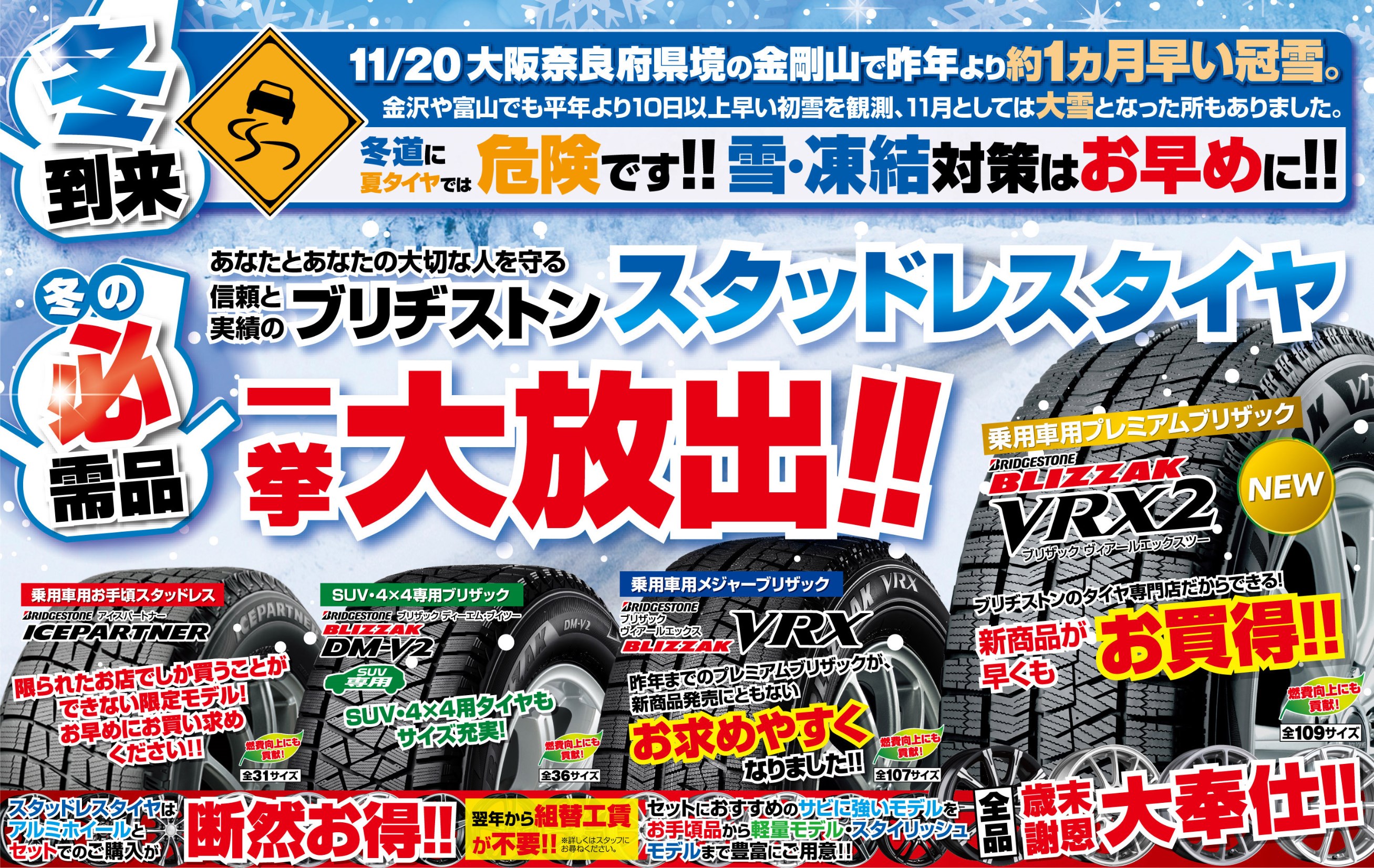 信頼と実績のブリヂストンのスタッドレスタイヤを