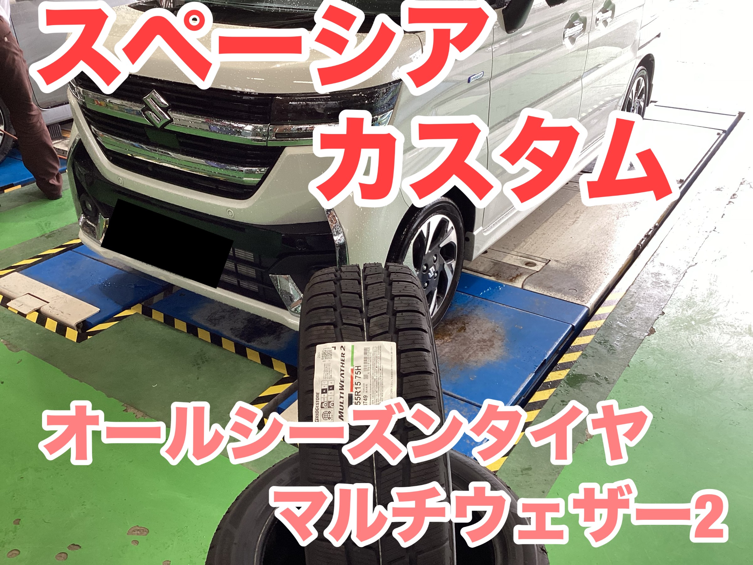 いつもタイヤ館 六甲北店の ホームページをご覧いただき 誠にありがとうございます! 今回のサービス事例はコチラ! スズキ スペーシアカスタムのタイヤ交換をさせていただきました! タイヤは オールシーズンタイヤの ブリヂストン、マルチウェザー2 サイズは 165/55R15 オールシーズンタイヤは、...
