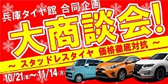 いつもタイヤ館 六甲北店の ホームページをご覧いただき 誠にありがとうございます! 10/21から好評開催中の 兵庫タイヤ館合同企画 大商談会ですが 残り2日となりました! スタッドレスタイヤを お買い得にご案内致します!! タイヤ館 西脇店・三田店・川西店・六甲店・和田山店・太子店 計6店舗合...