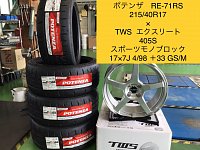 いつもタイヤ館六甲北店のHPを ご覧頂き誠にありがとうございます! 今回はアバルト 500の タイヤ・ホイール取付けです! タイヤは ポテンザ RE-71RSを装着です。 タイヤサイズは215/40R17 ホイールは 5本スポークの鍛造ホイールをお求めでしたので TWS エクスリート 405S スポーツモノブロック ...