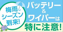 タイヤ館 六甲北店のホームページを ご覧いただきましてありがとうございます。 梅雨はもちろんですがゲリラ豪雨や台風などで雨にみまわれる 機会が多いと思います。 なので雨への対策はきっちりとしましょう!!! ・ワイパーゴム劣化してませんか? ふき取りが悪いとキケンです。 ・夏タイヤの溝...