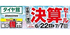 いつもタイヤ館六甲北店のWEBをご覧いただきありがとうございます!6月22日(土)~7月7日(日)まで集中得市決算セールを開催致します!!ブリヂストンタイヤは8月1日から値上がりすることが決定いたしました。交換をお考えの方は値上げ前のセールでの交換がオススメですよ!webチラシはこちら!こ...