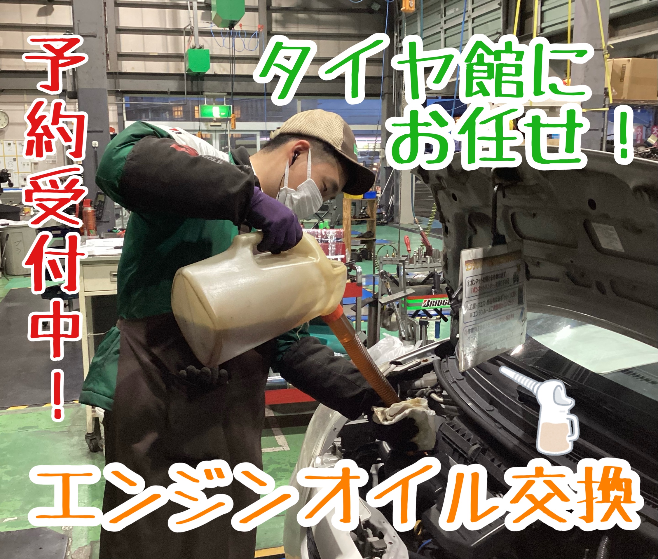 お出かけ前のオイル交換はタイヤ館に!