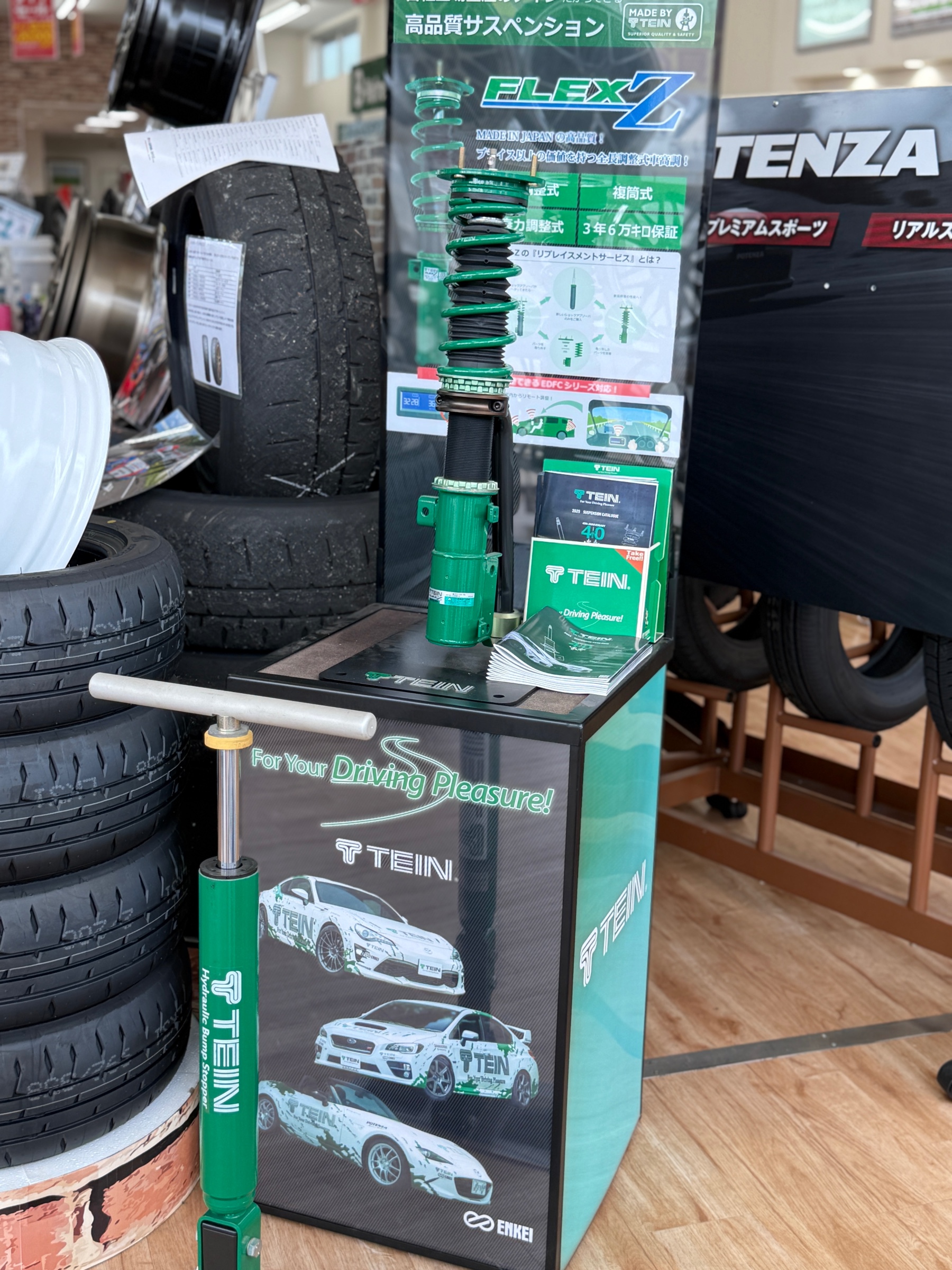 常設展示に加え、追加でWORK製ホイールとTEIN製サスペンションを展示いたします!