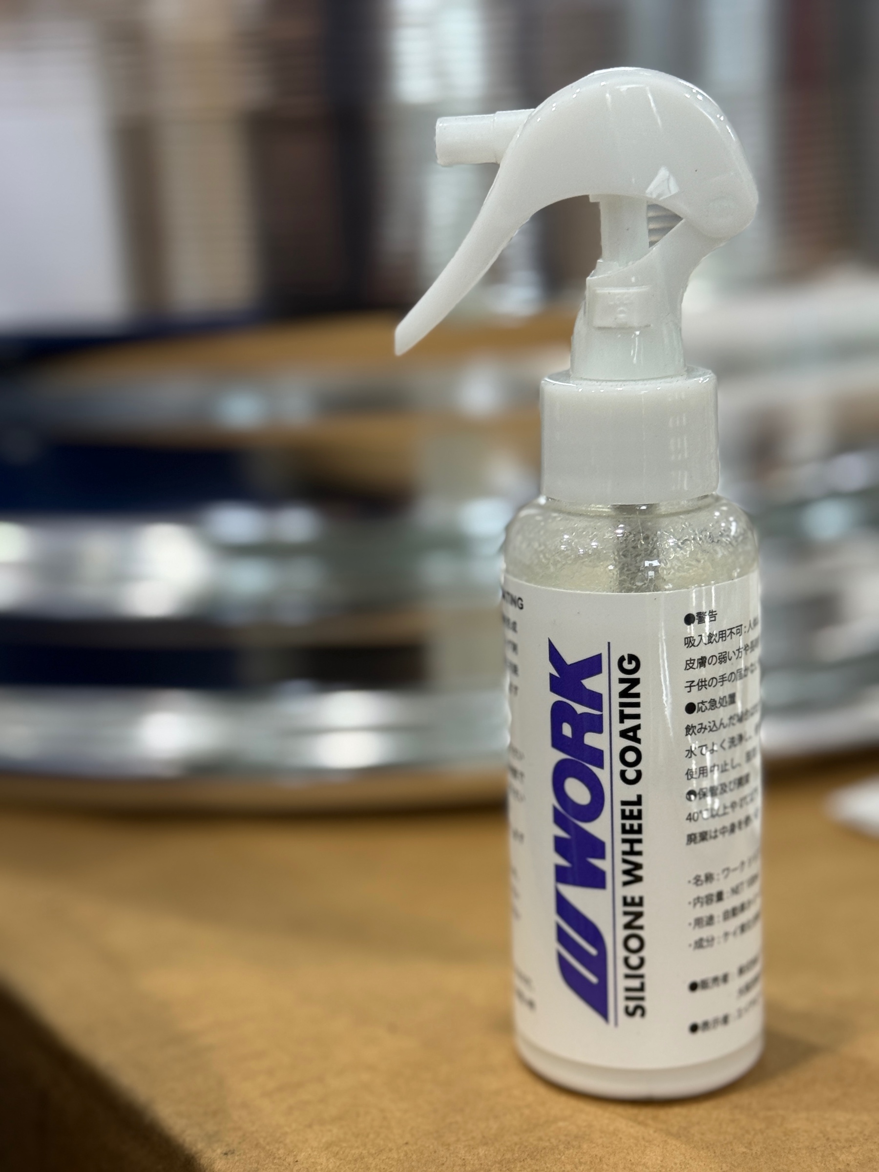 事前にWORK純正ホイールコーティング剤 シリコーンホイールコーティングでコーティングを施工のうえ、