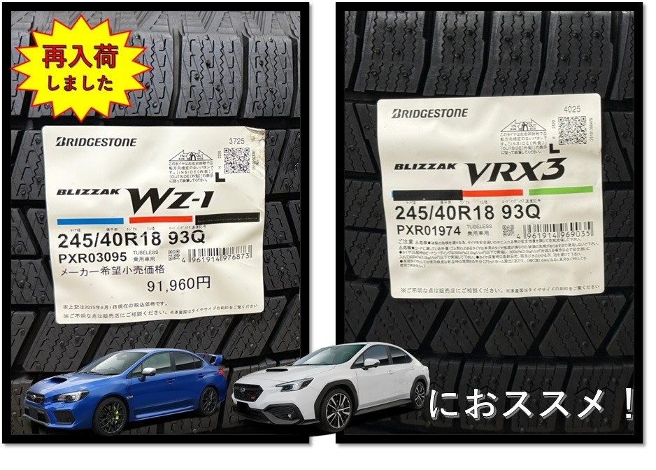 WRX STIにおすすめ! 245/40R18 ブリザックWZ-1・VRX3入荷しました!