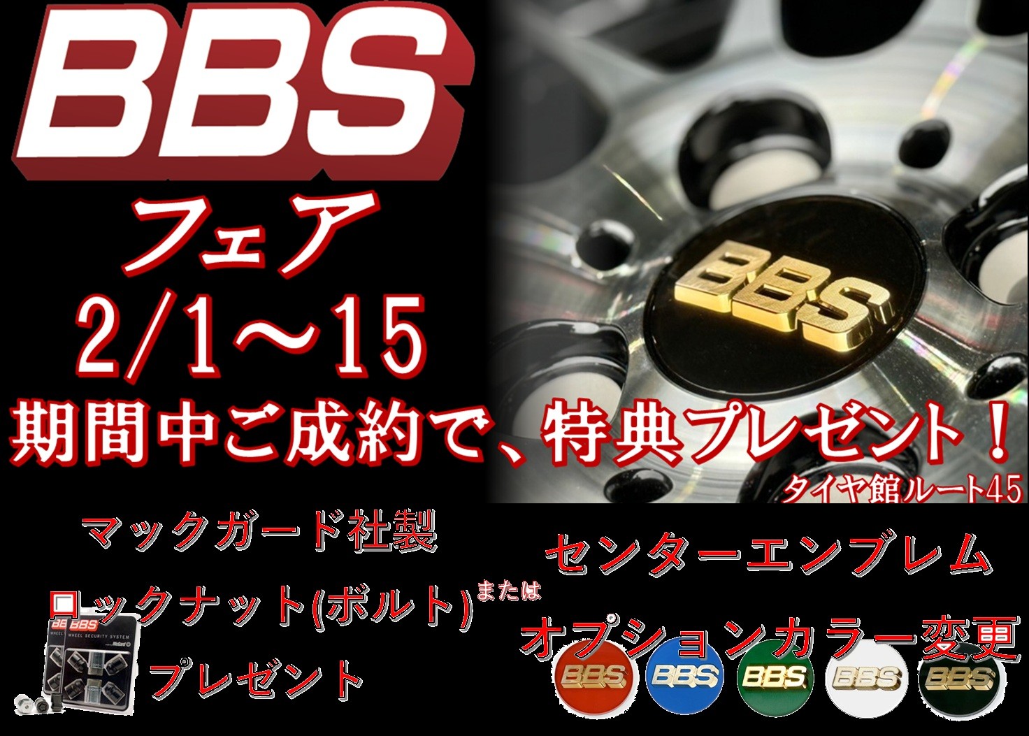 2/1(日)~15(日)の2週間限定でBBSホイールのイベントを開催いたします!