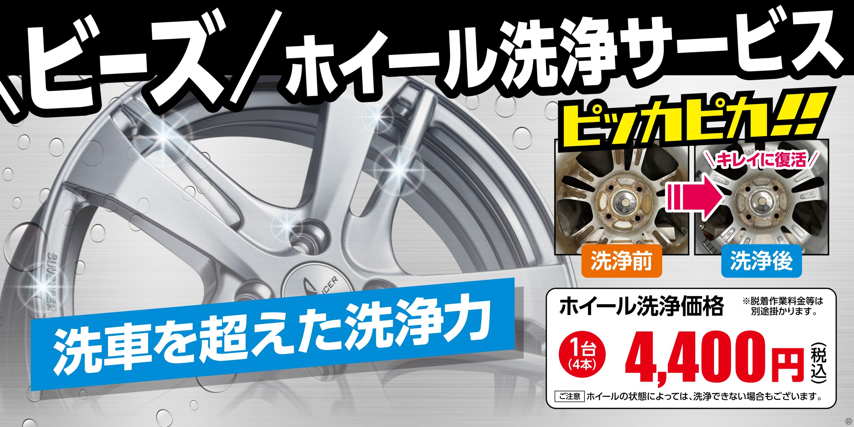 新メニュー! 温水と専用ビーズのチカラでホイールの汚れをしっかり落とす! ホイール洗浄サービスはじめました!