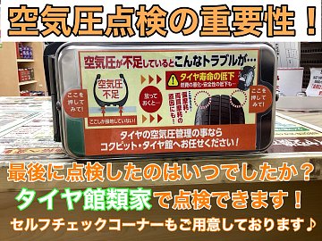 自宅でタイヤ交換された方も大歓迎!タイヤ館類家でタイヤの空気圧とトルクチェック致します!
