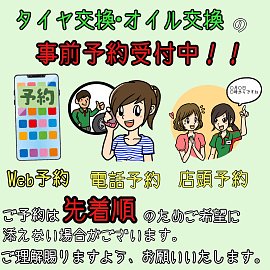 タイヤ館類家は作業の事前予約の受付をしております。