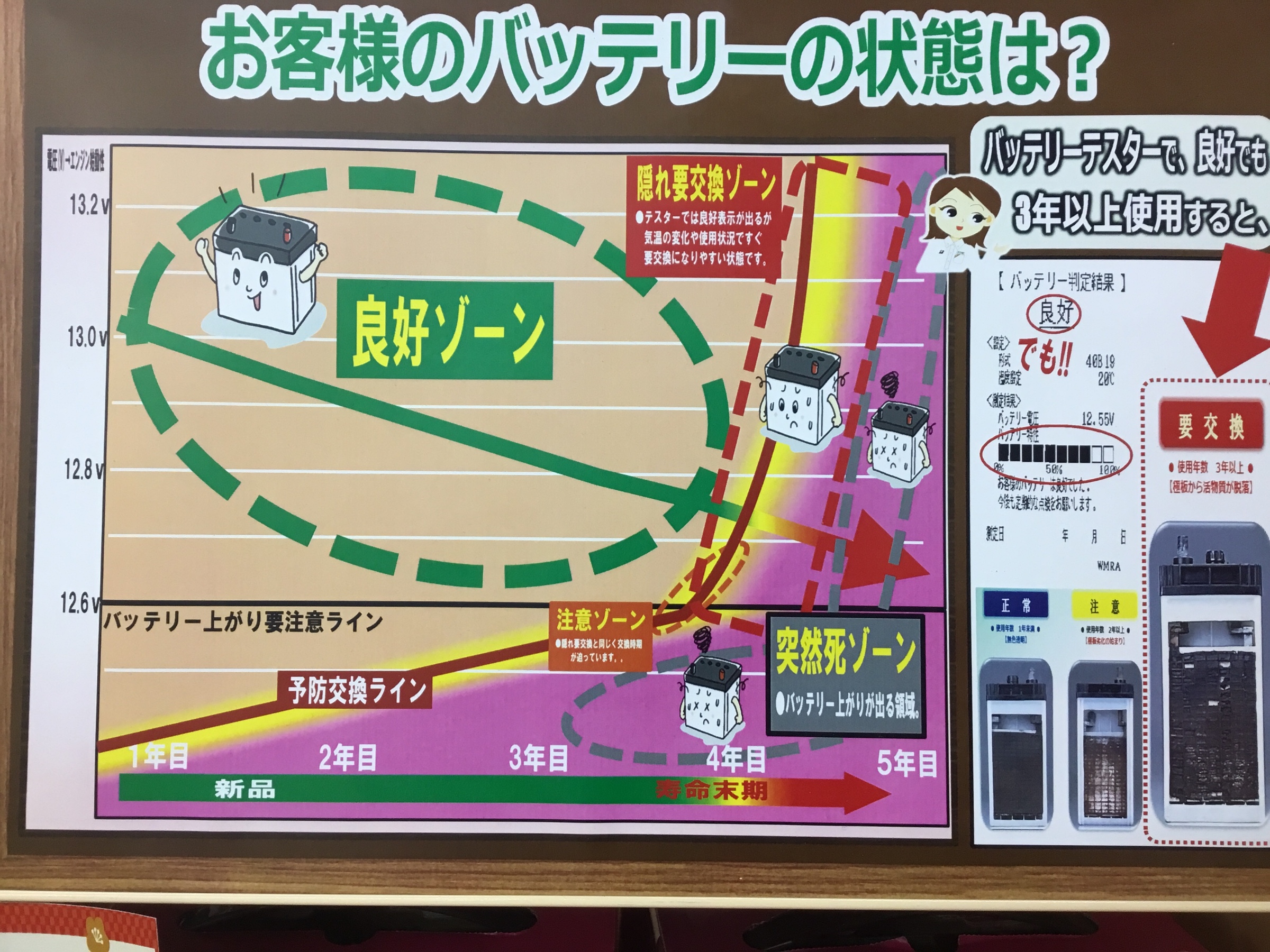 三年以上経過したバッテリーは充電状態が維持しにくくなり、突然バッテリー上がりを起こしてしまうのです。