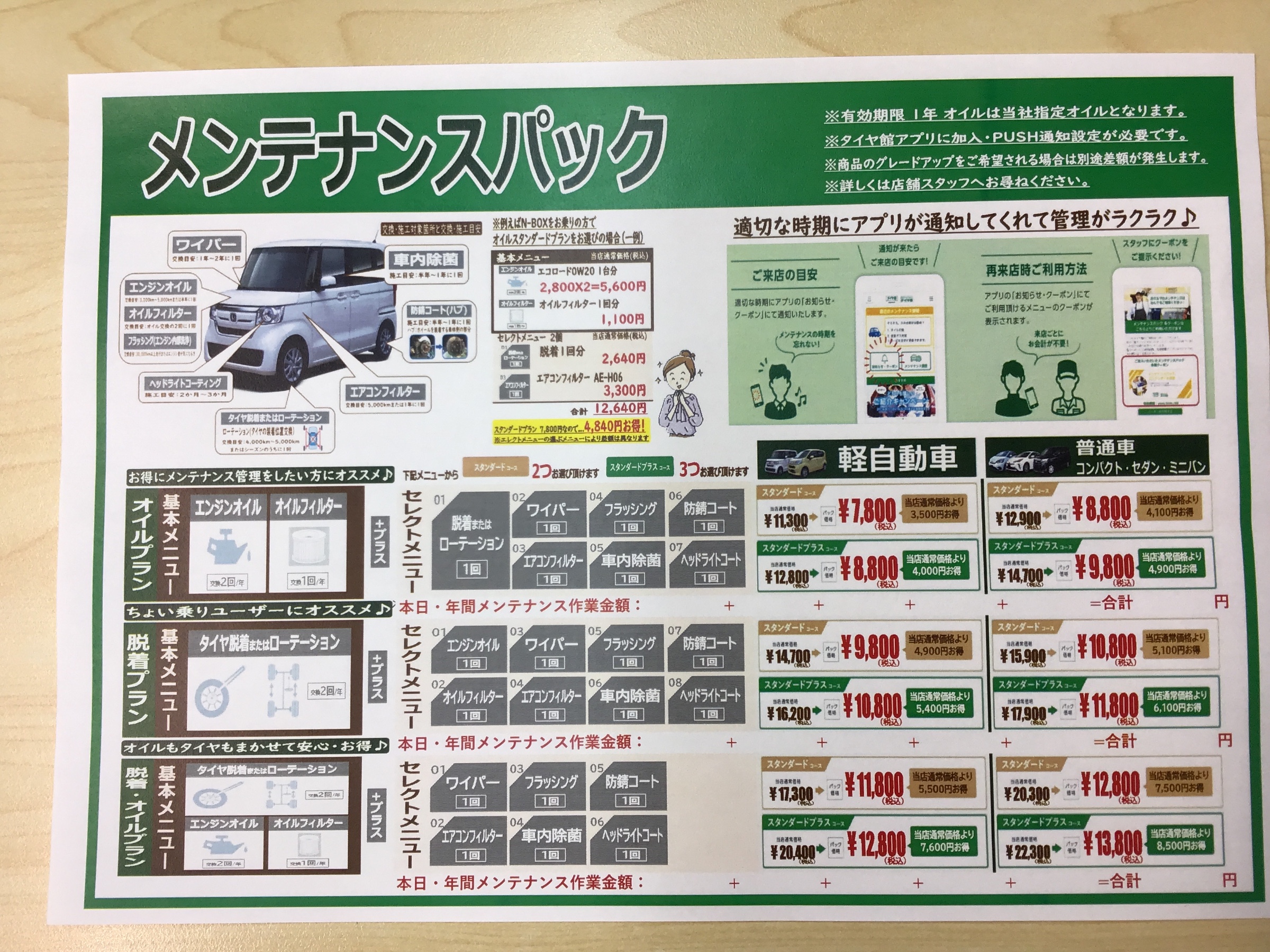 タイヤ館アプリで管理させて頂き、