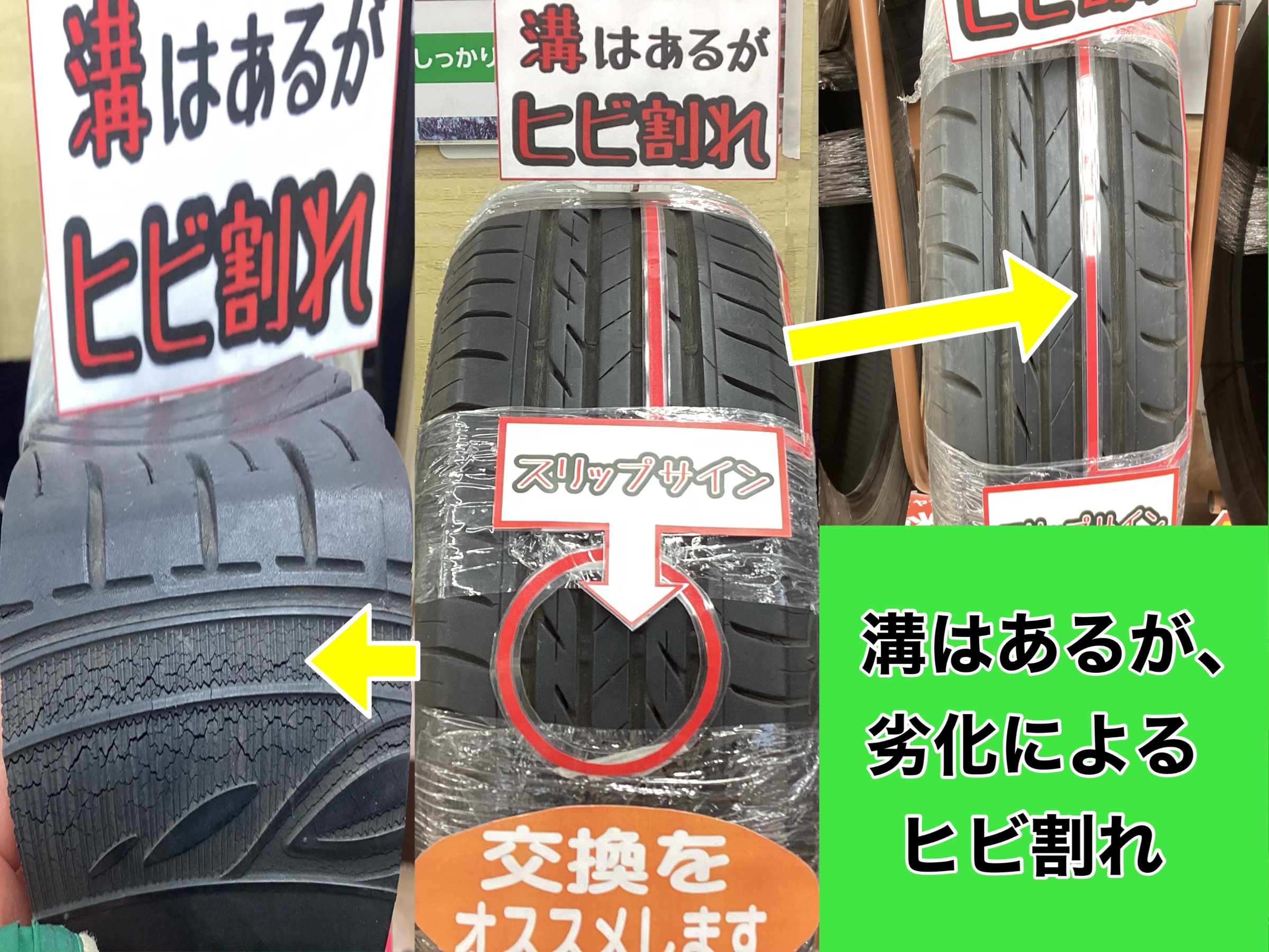 上記の様にタイヤはゴム製品ですので経年劣化でヒビ割れてきます。