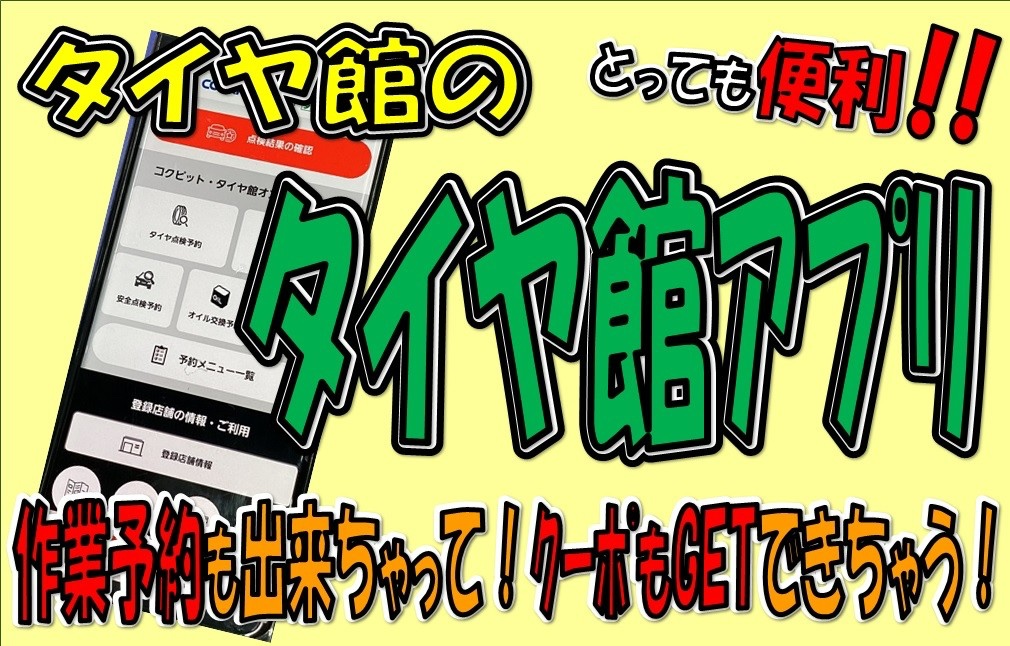 大好評!便利でお得なタイヤ館アプリをぜひダウンロードしてお越しください(*'▽')♪
