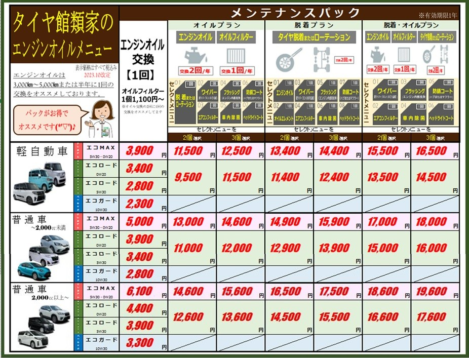 オイル交換、タイヤ館交換をタイヤ館類家で行っている、または初めて来店されるみなさま、必見です!