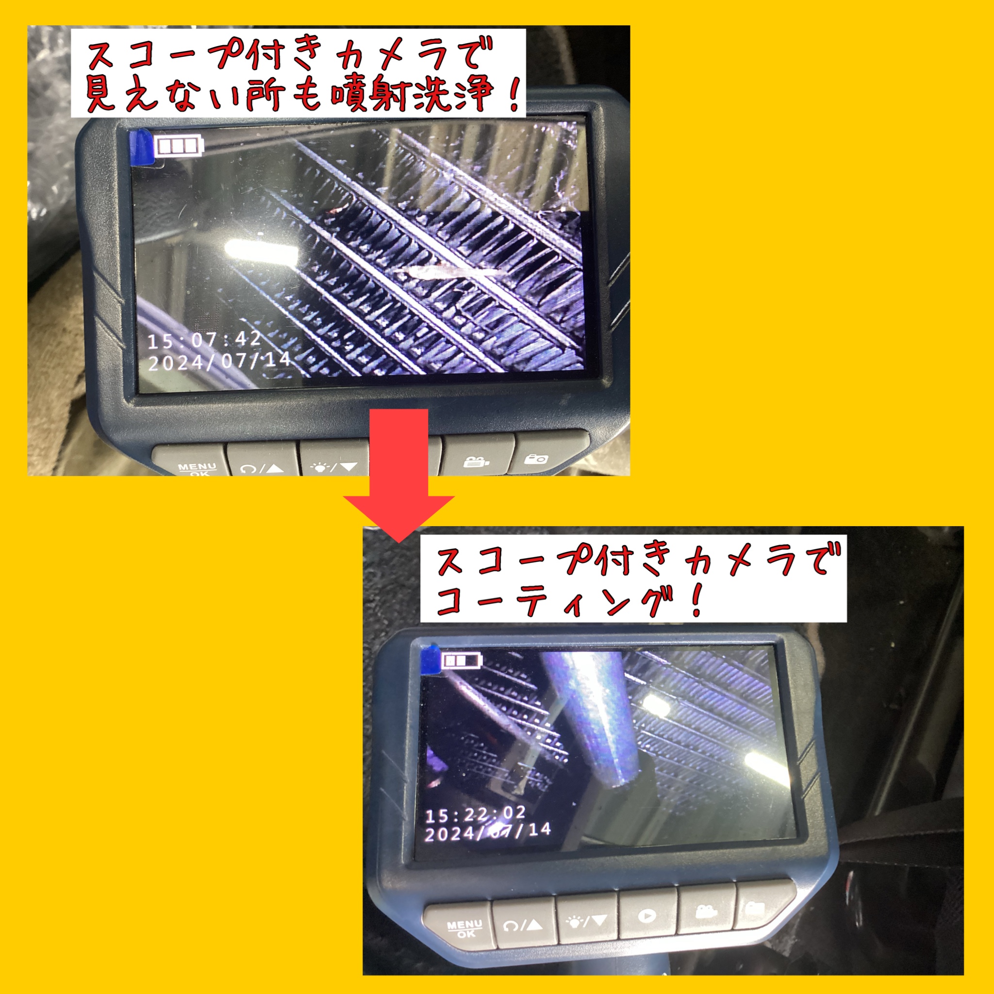 次にスコープ付きカメラで確認しながら噴射洗浄し、