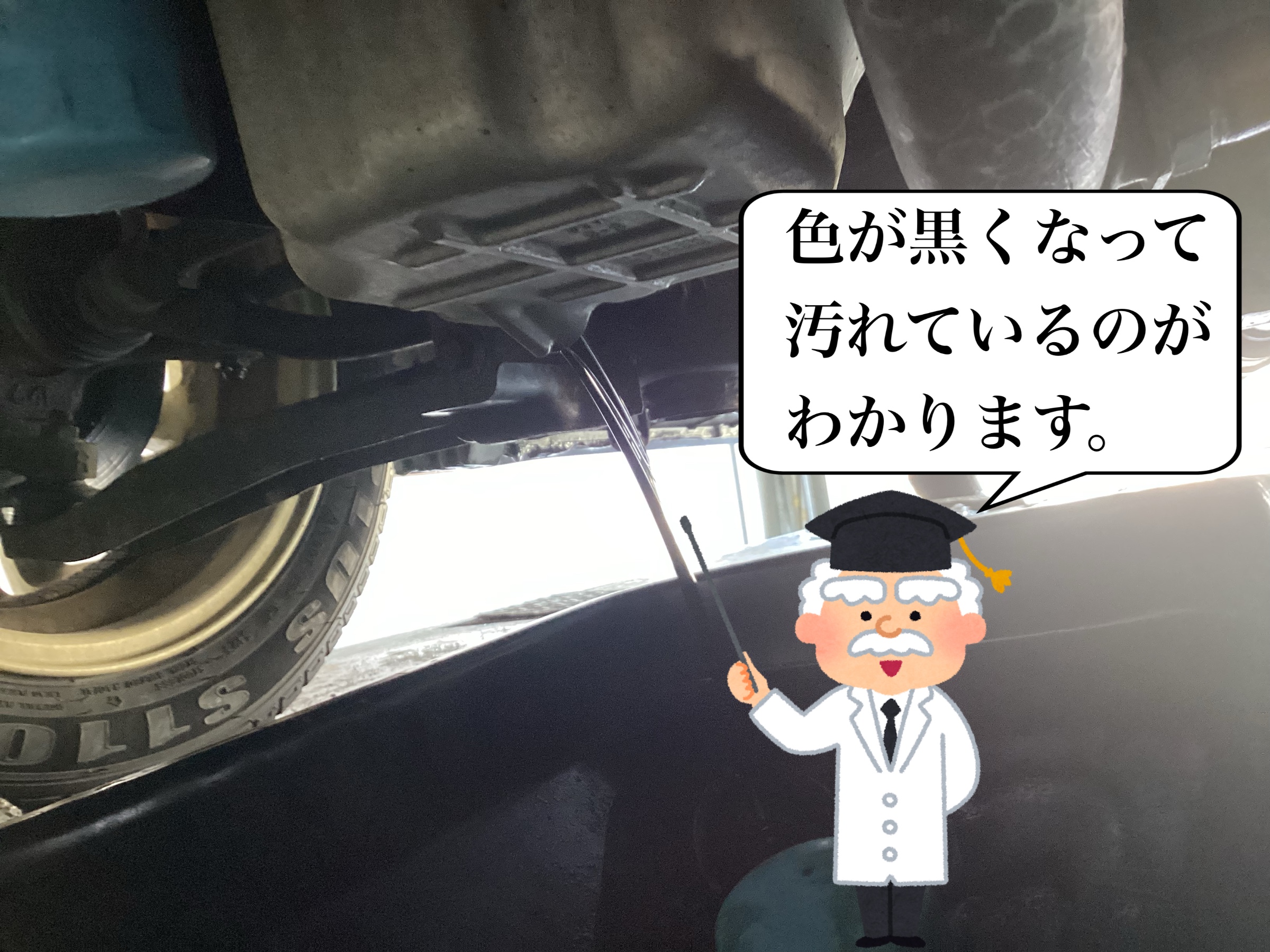 少し見えづらいですが、出てきているオイルが黒くなっているのがわかると思います。