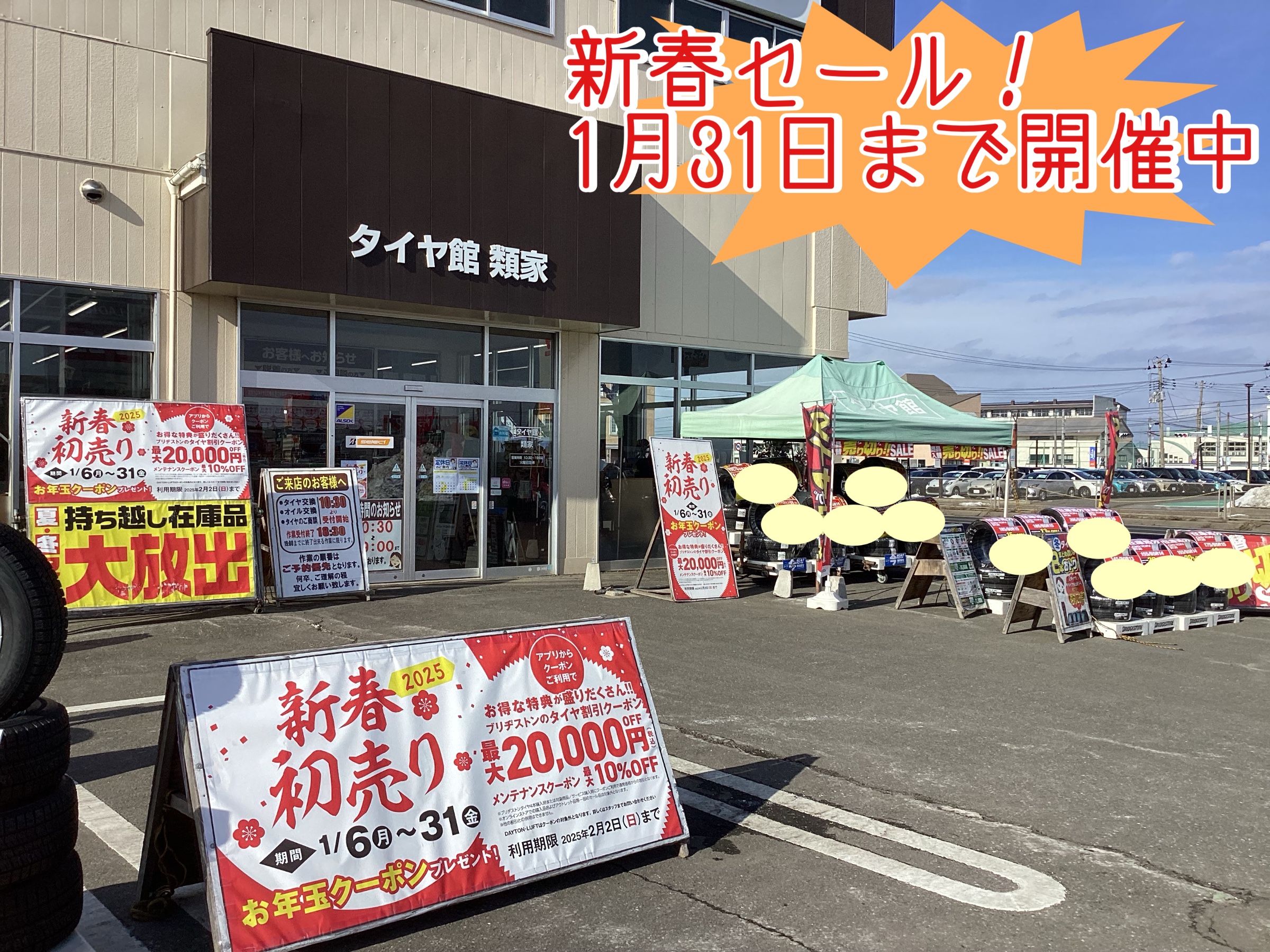 タイヤ館類家では、新春セールを1月31日まで開催しております!