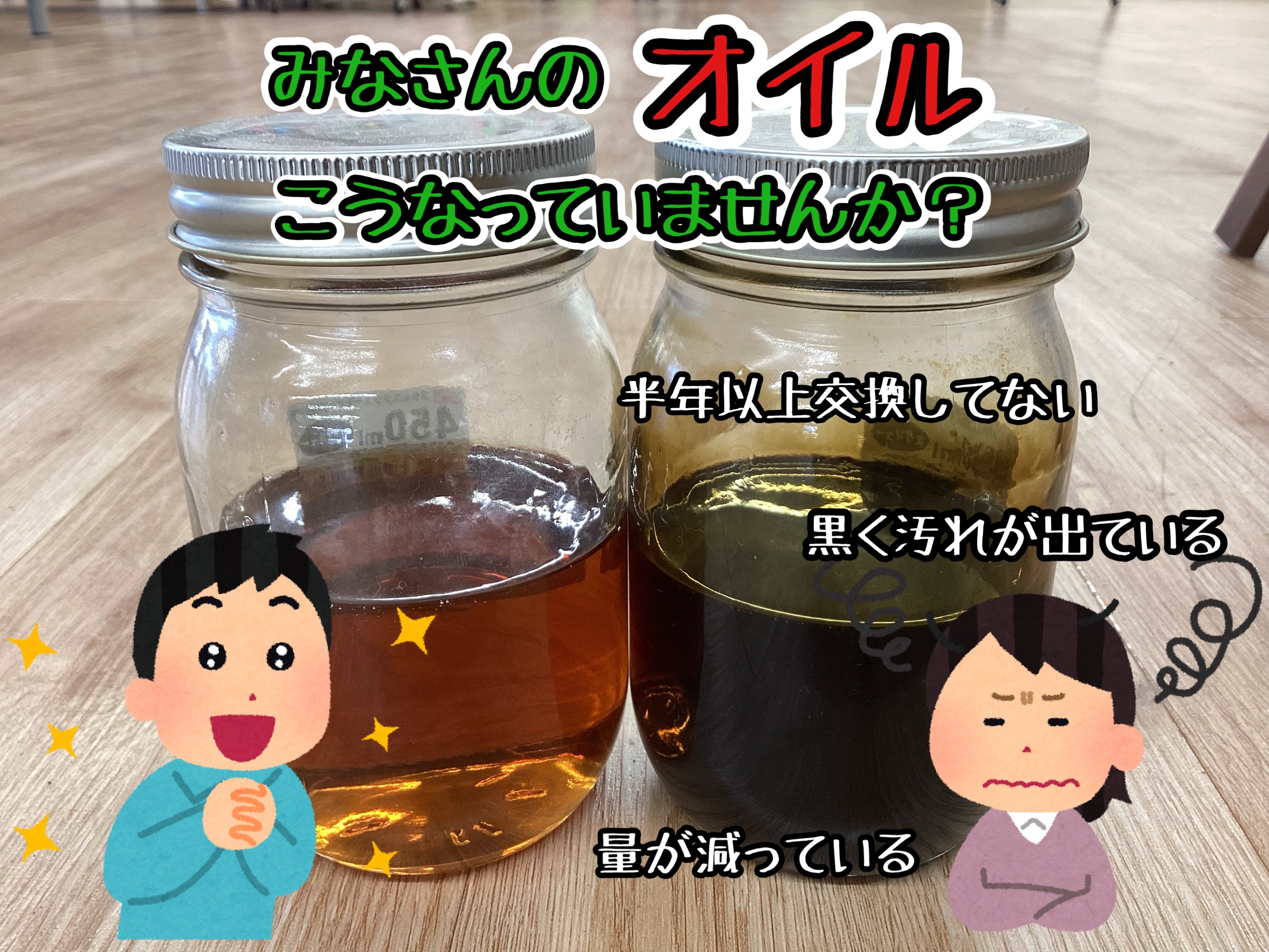 オイル交換していないとこんなにも真っ黒なオイルになってしまいます。