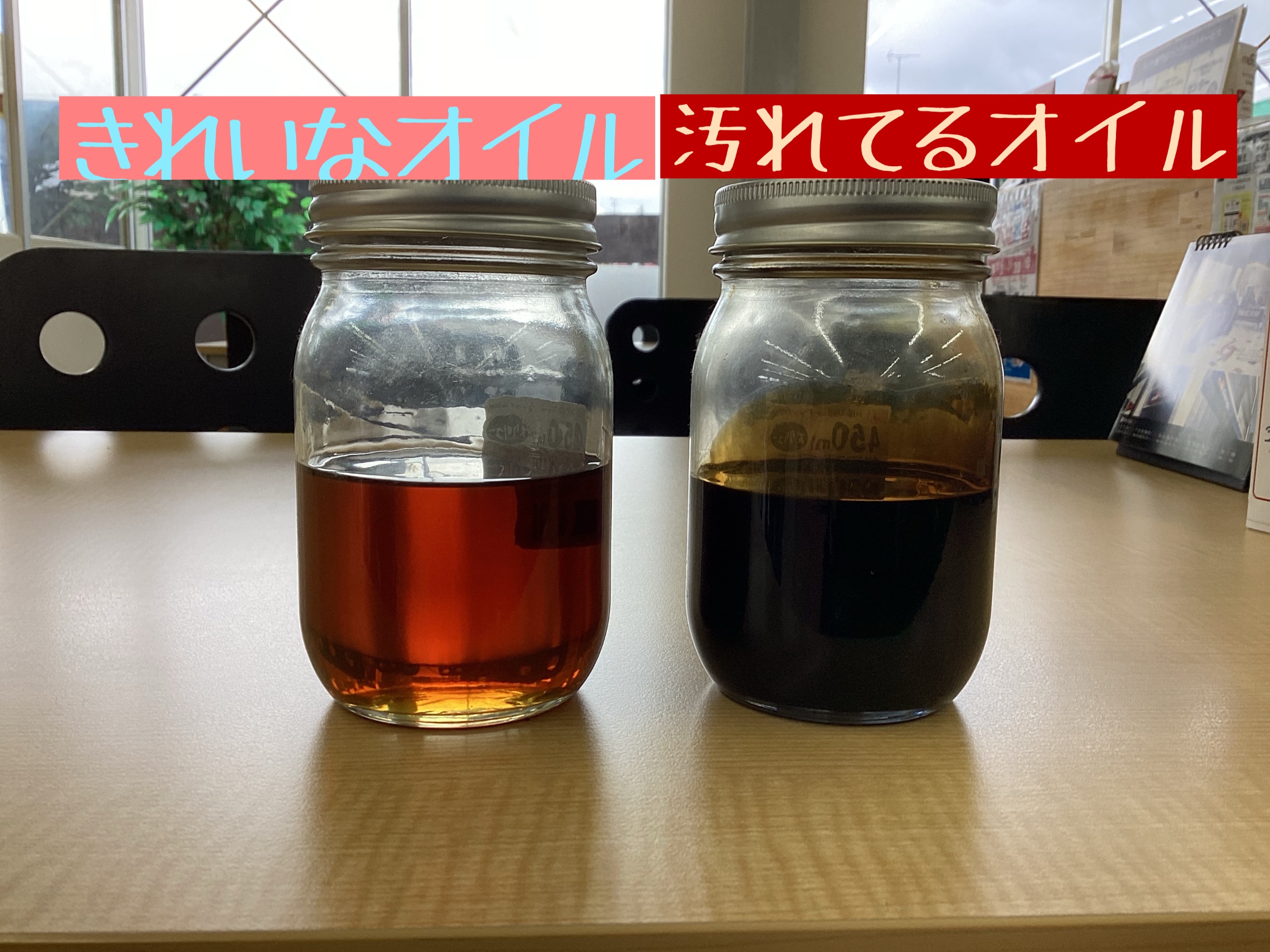 左側がきれいなエンジンオイルで、右側が汚れているエンジンオイルです。