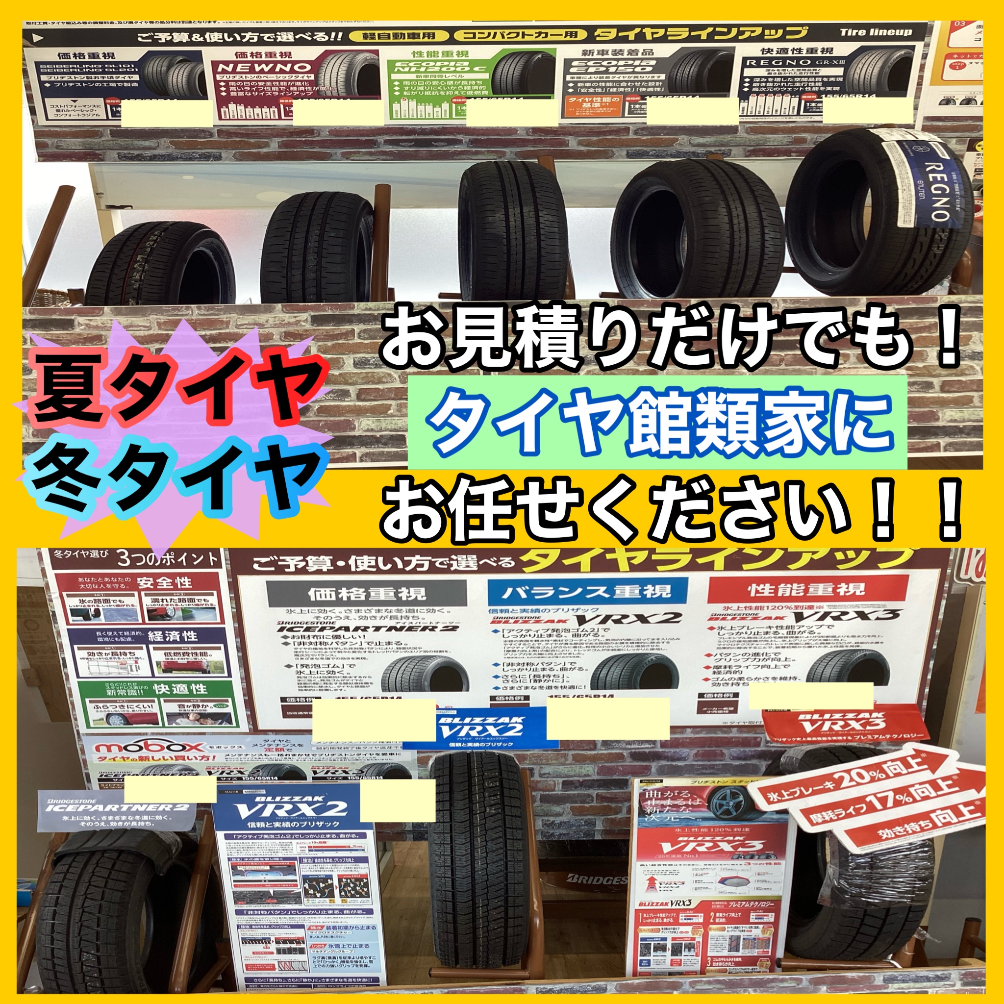 夏、冬タイヤご検討中の方いましたら是非タイヤ館類家にお越し下さいませ♪