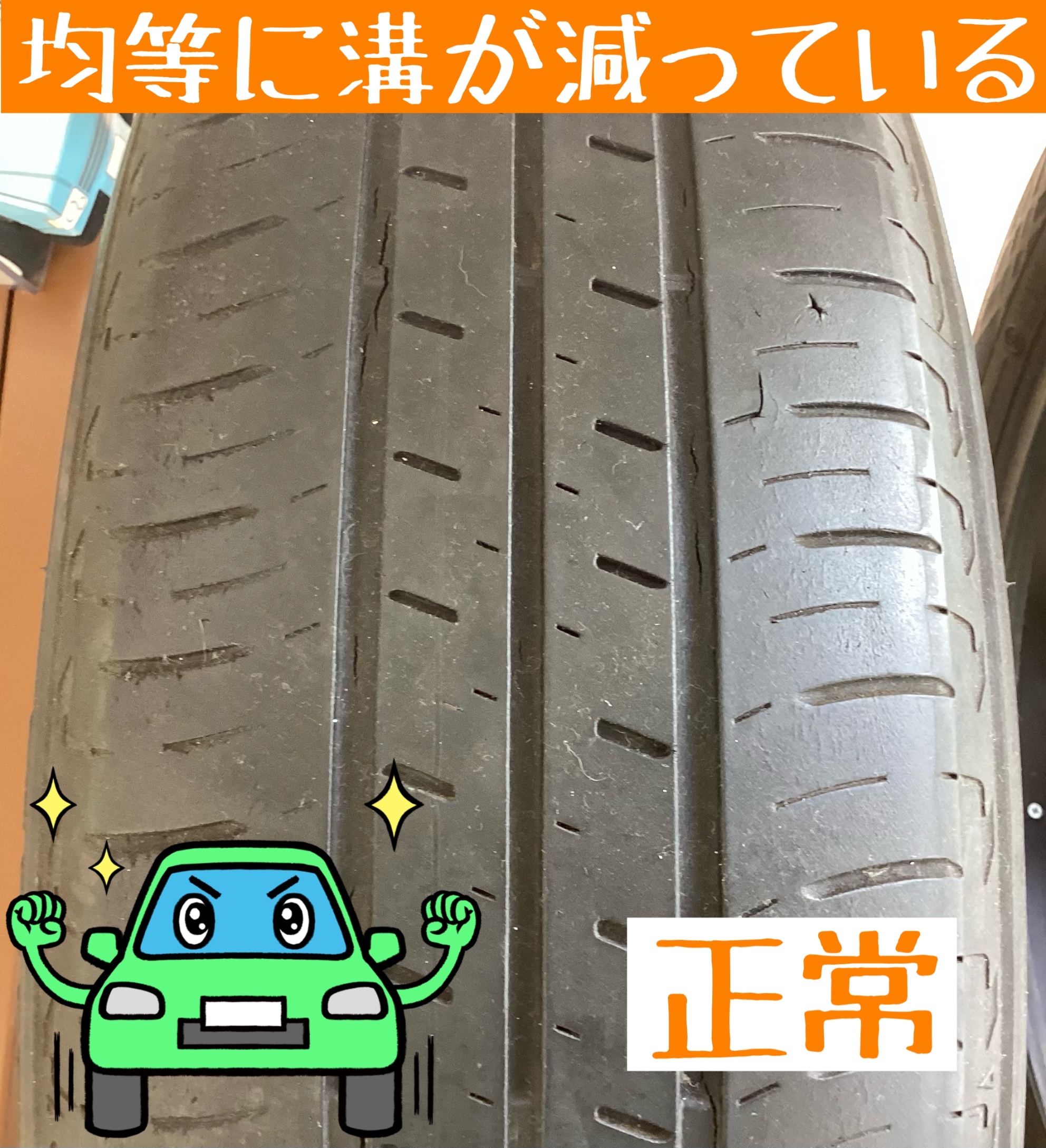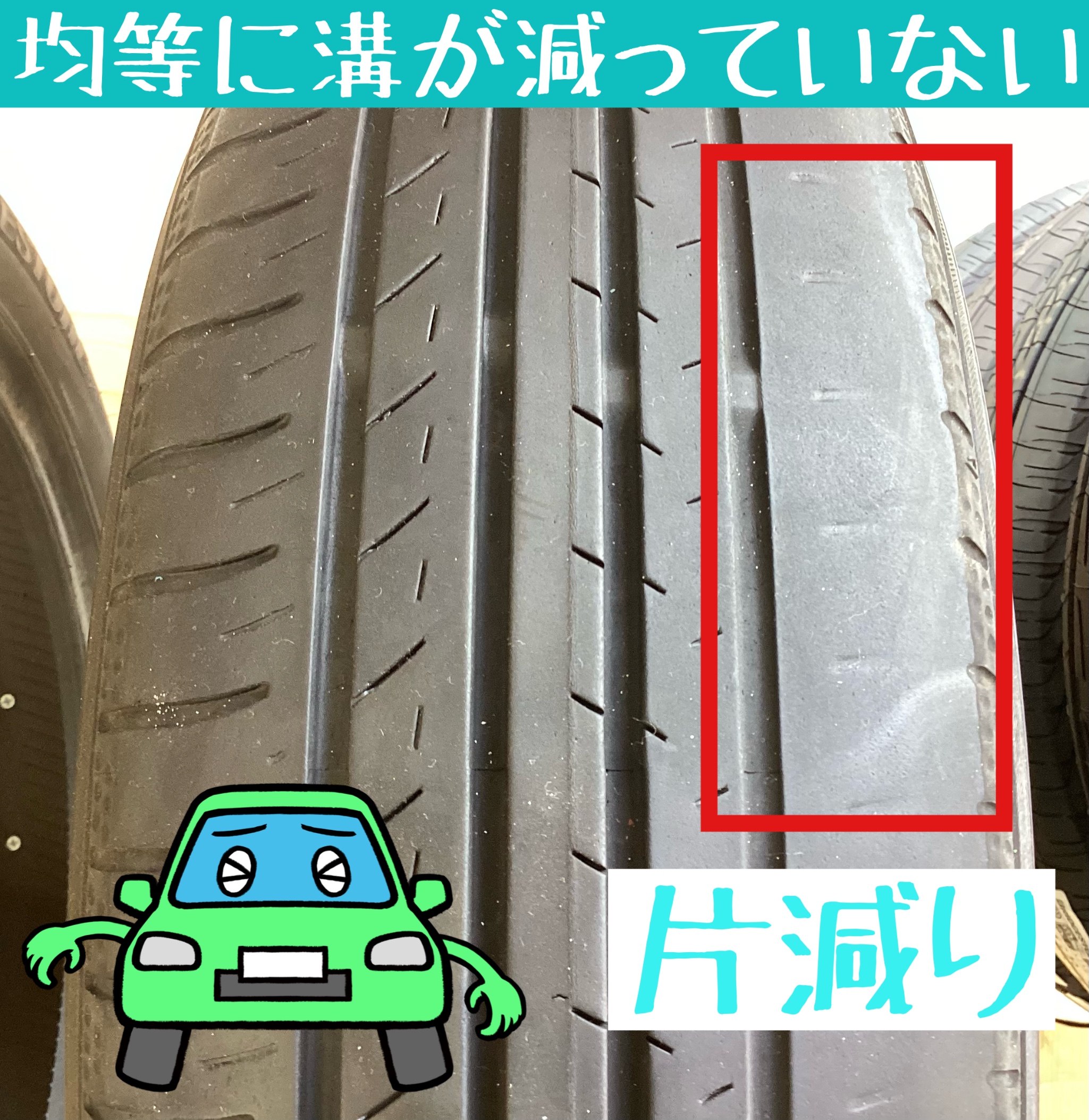 例えば、タイヤの溝が均等に減っていない状態ですと、、、