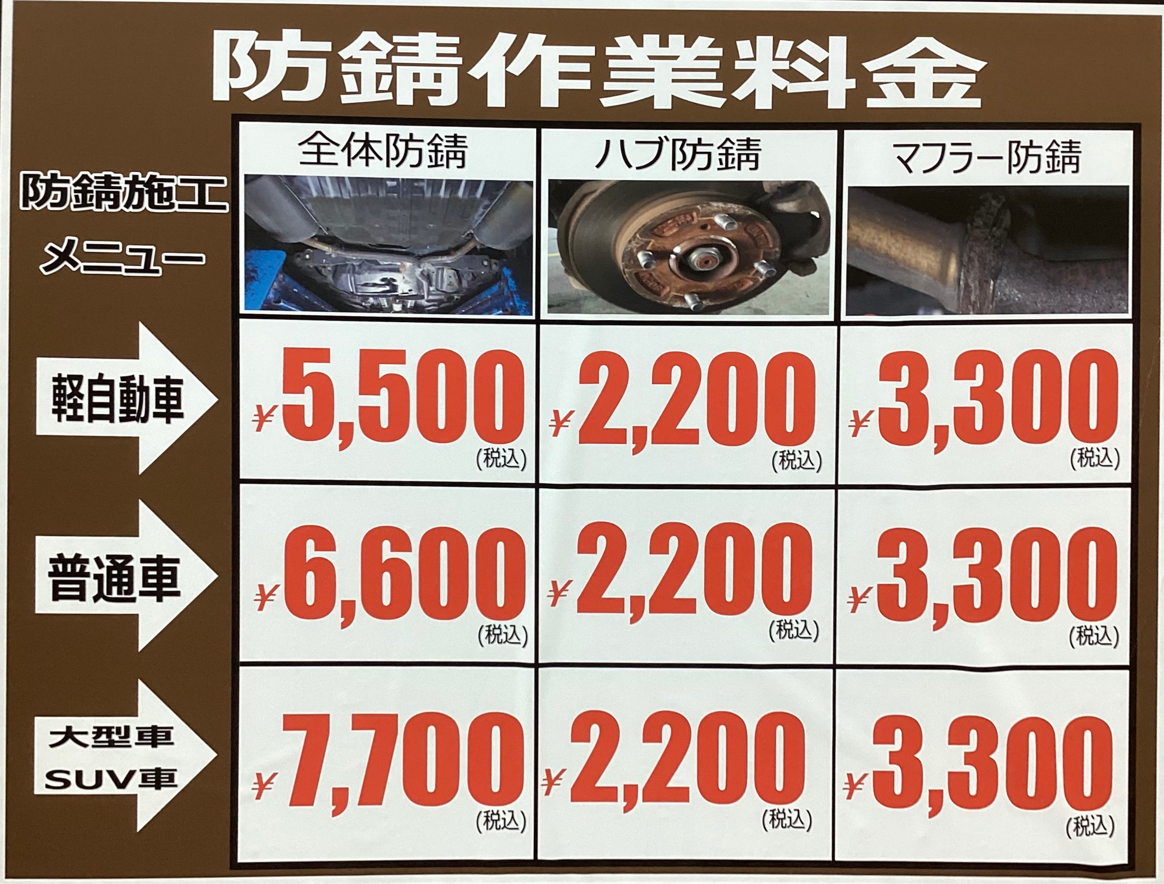 車の錆止め!下回り、マフラー、ハブ、お任せください!