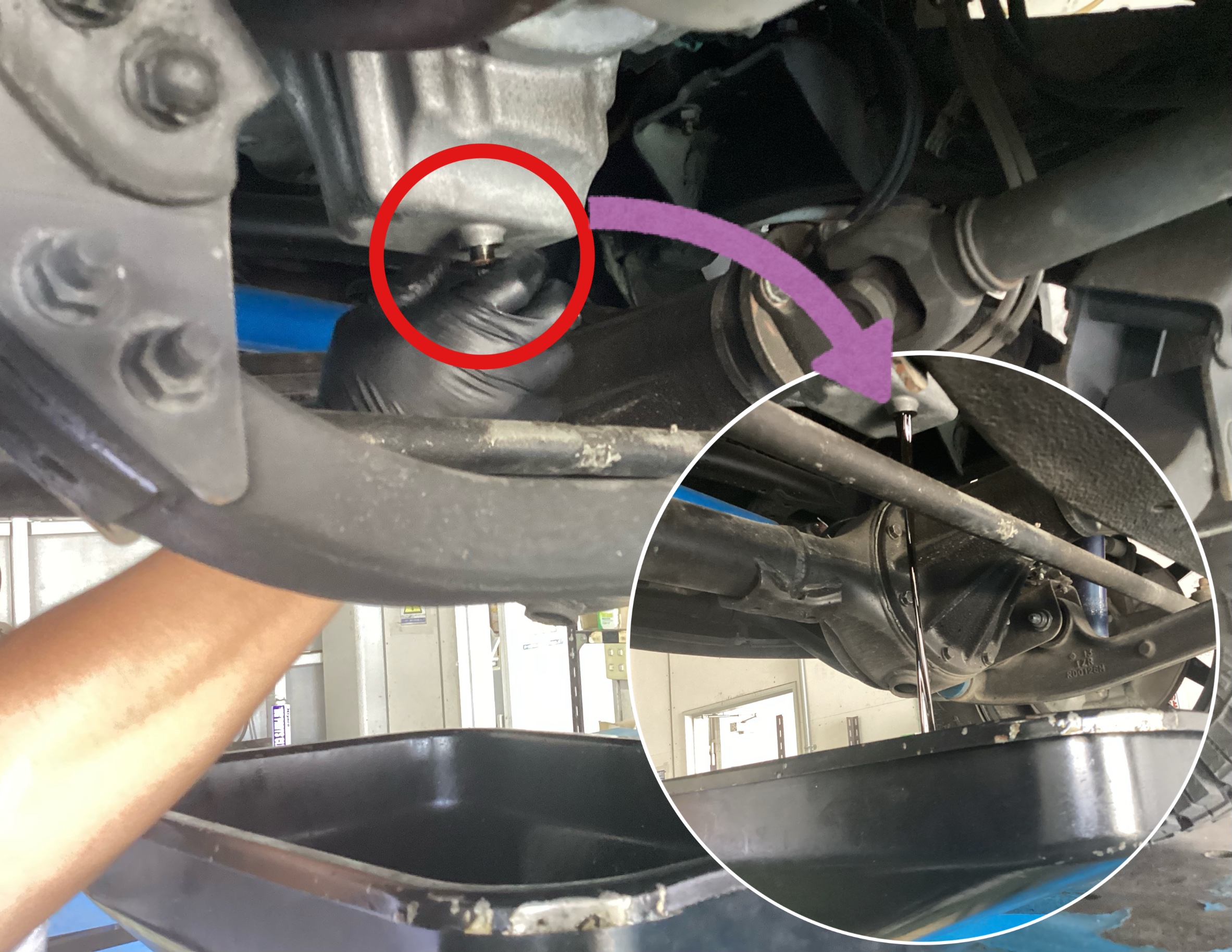 まずはう上記の画像の通りエンジンオイルを抜きます。